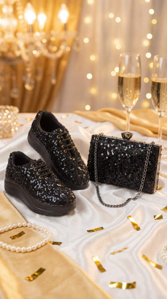 The Midnight Sequince Luxe Sneakers with Designer Clutch – Heel height 2.2 inches approx