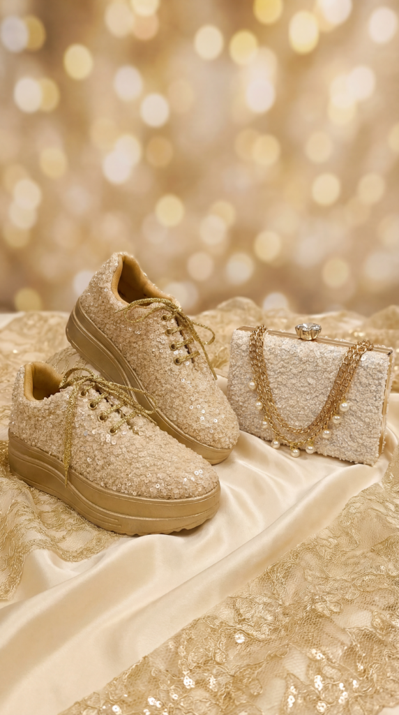Champagne Glow Sneakers with Designer Clutch – Heel height 2.2 inches approx
