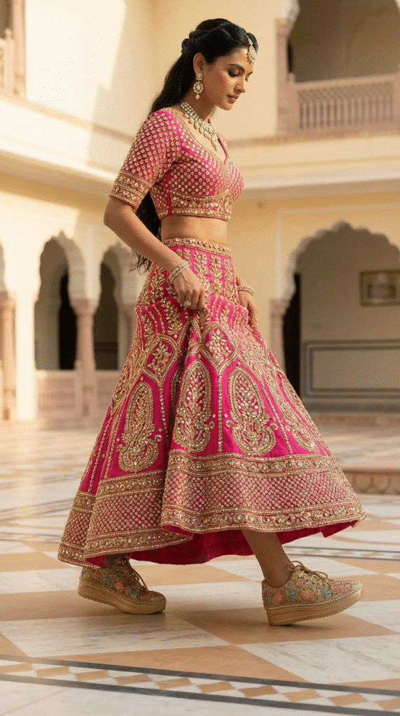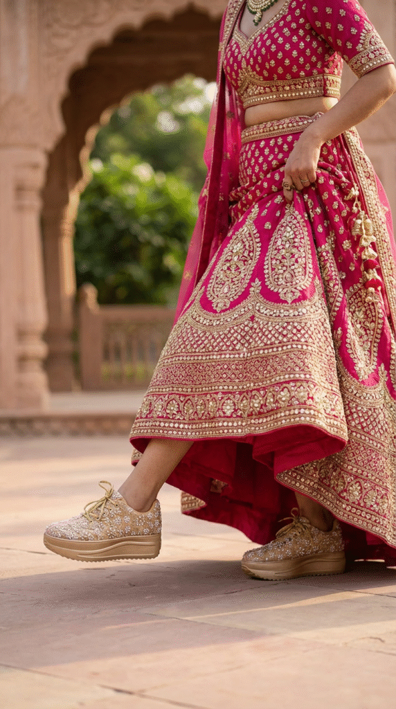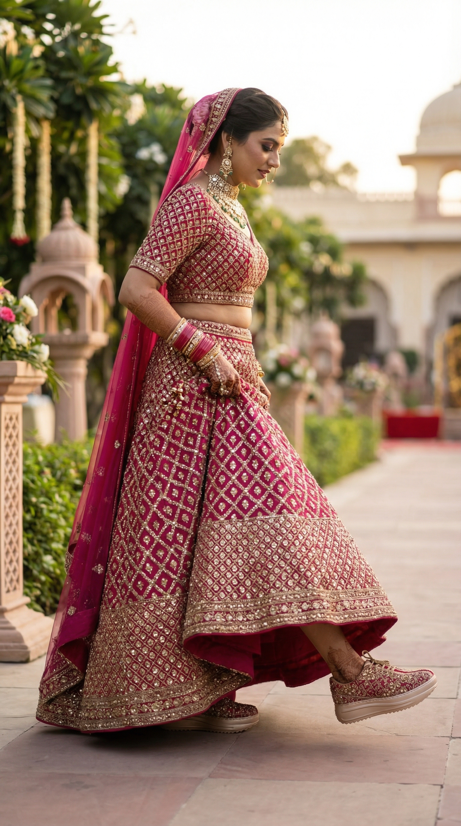 Dark Pink Sneaker with Gold Work