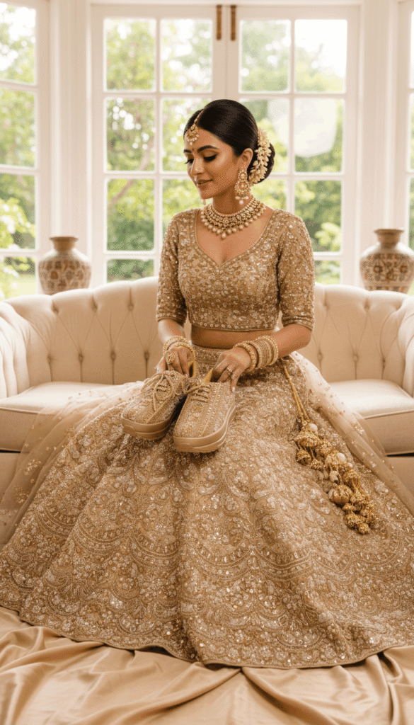 “My mom laughed when I said I’d wear sneakers with my lehenga. Now she wants her own pair. They’re comfort, culture, and couture all in one.”