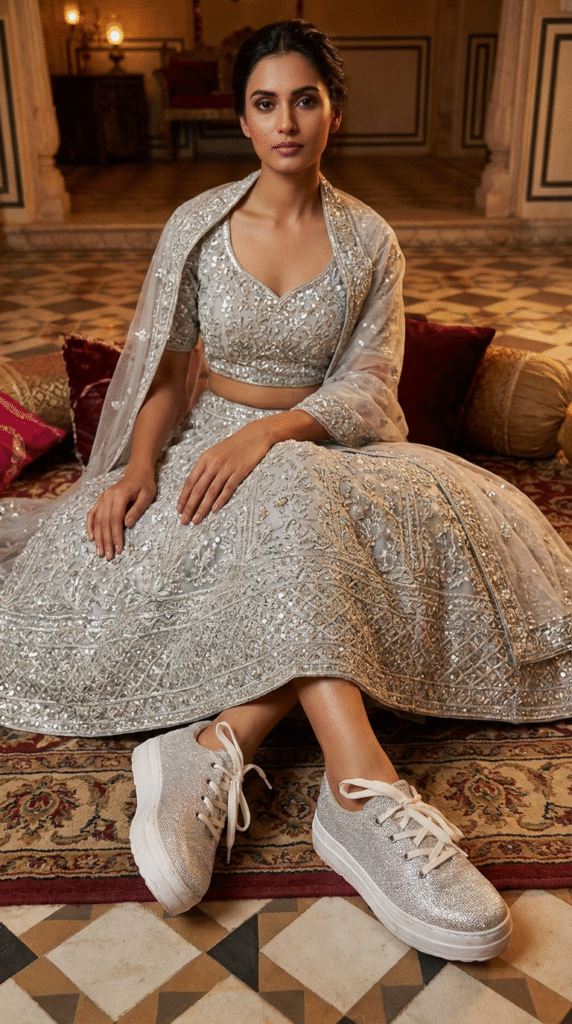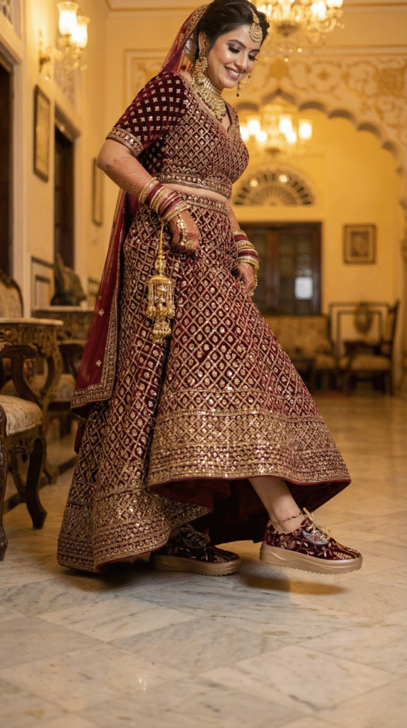 “My mom laughed when I said I’d wear sneakers with my lehenga. Now she wants her own pair. They’re comfort, culture, and couture all in one.”