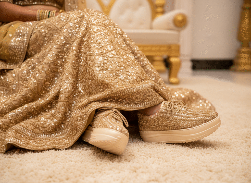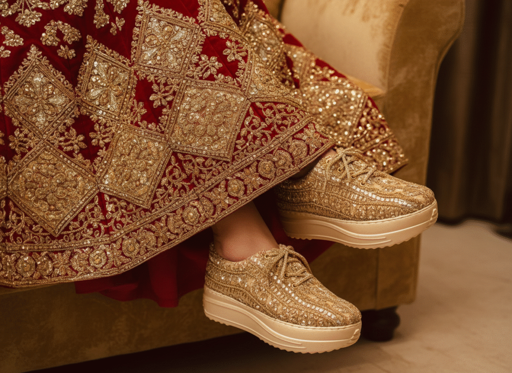 “My mom laughed when I said I’d wear sneakers with my lehenga. Now she wants her own pair. They’re comfort, culture, and couture all in one.”